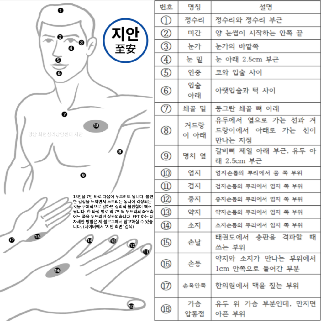 이러한 심리적 역전 현상을 해결하기 위해 EFT(감정자유기법)가 필요합니다. EFT는 우리가 행동을 미루고 자기 파괴적인 패턴을 반복하는 근본 원인을 타점을 통해 정리해 줍니다.